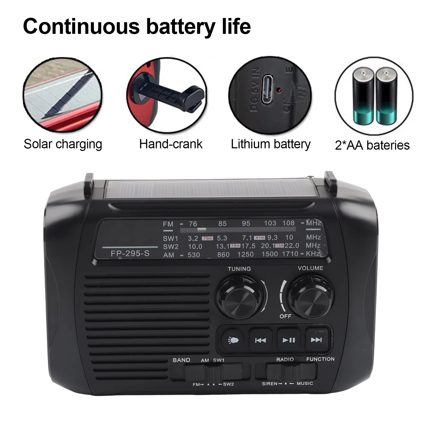 *SOS Feature: This radio is equipped with a dedicated SOS alarm button that, when activated, emits a loud sound and flashing light, providing crucial assistance during emergencies such as natural disasters or outdoor injuries.
